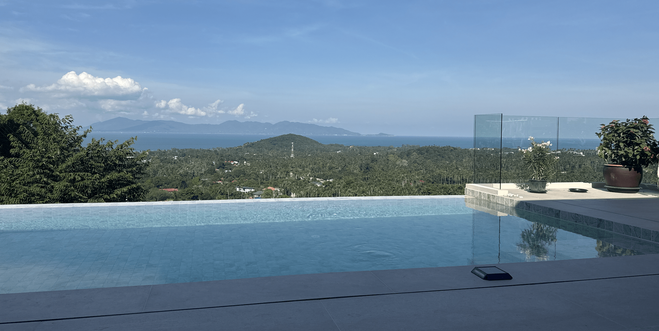 Das Haus wurde Ende 2025 fertiggestellt. Es befindet sich an einem Berghang und 100m über Meeresspiegel in einem Neubaugebiet. Die Lage bietet Ruhe* und einen einzigartigen Ausblick auf das Meer und die Insel Koh Phangan.